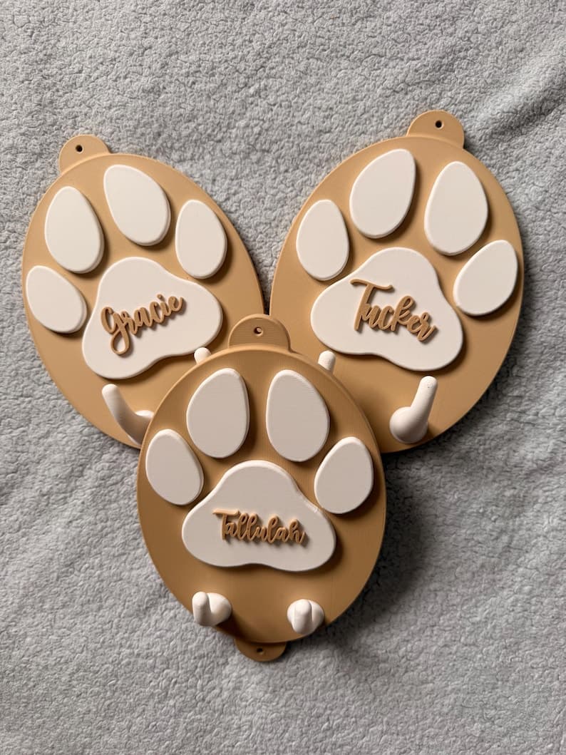 Personalized Pet Hanger Keep your pet’s essentials organized with this cute and functional custom hanger. Perfect for leashes, collars, and accessories. Details: • 3D printed • Material: PLA (eco-friendly & durable) • Lightweight and easy to install • Personalized with your pet’s name Personalization: Add your pet’s name (e.g., “Bella”, “Max”) A perfect gift for pet lovers!